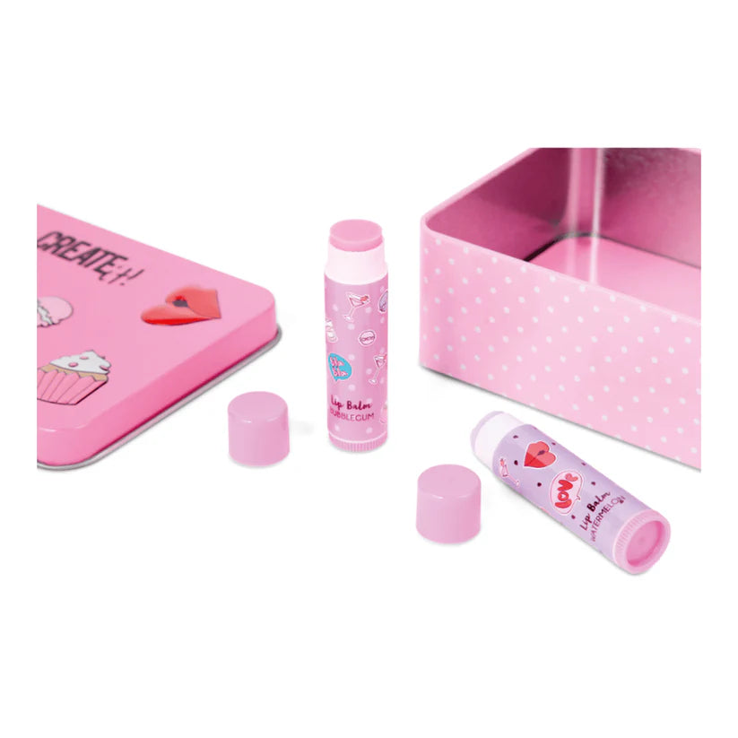 Son 5 diferentes bálsamos labiales dulces y sabrosos para cada día, vienen en una linda caja rosa con puntos que tiene espacio adicional para otros maquillajes, para que puedas guardar aún más elementos esenciales. ¡Es el regalo perfecto para preadolescentes!