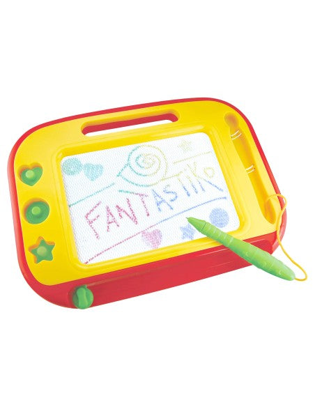 Contenido: 1 tablero de dibujo magnético, 1 rotulador magnético y 3 sellos.