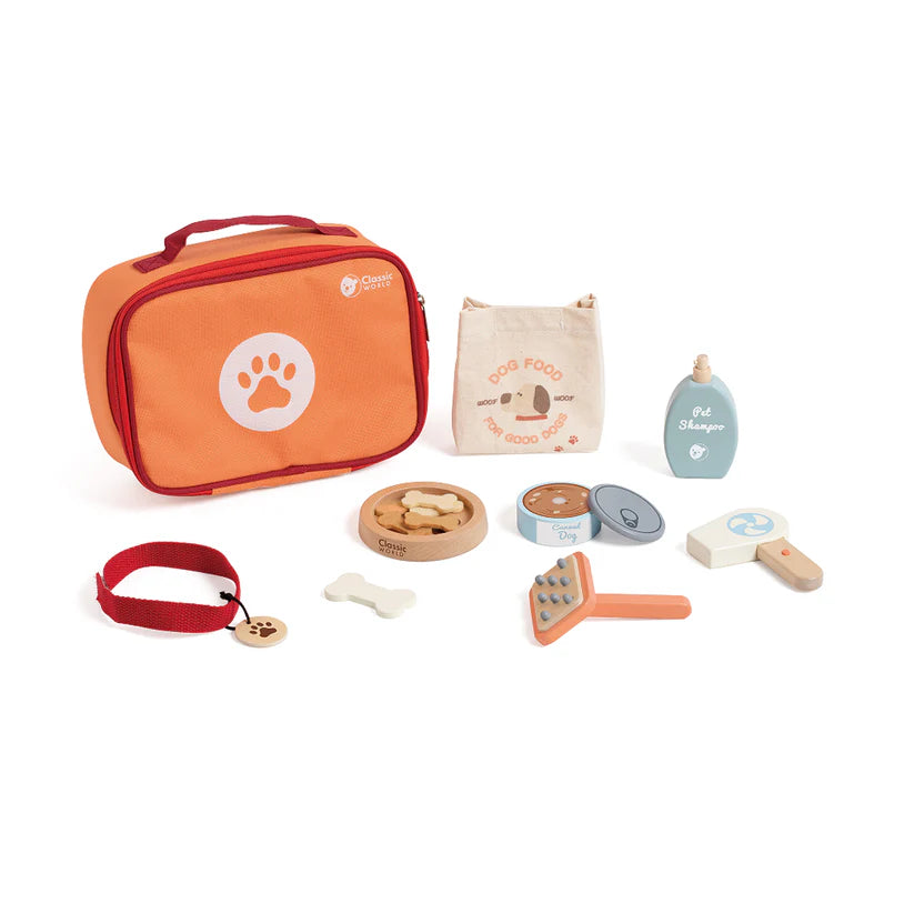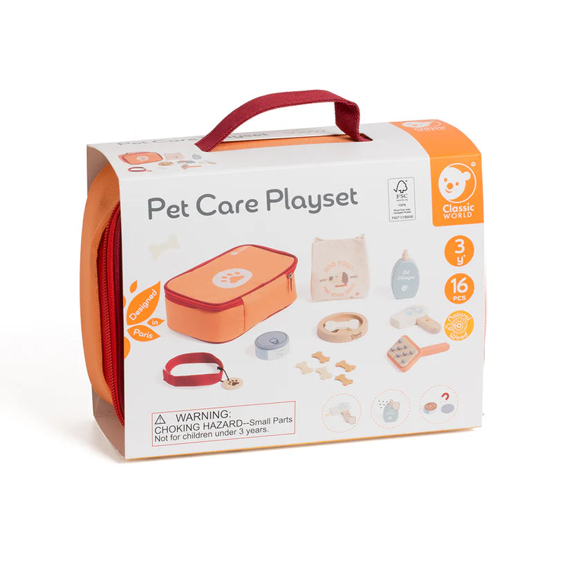 Con este hermoso Set de Cuidado de Mascotas de madera Classic World, los pequeños podrán disfrutar de horas de juegos de imaginación y roles cuidando a un amigo peludo con todos los suministros del juego de cuidado de mascotas.
